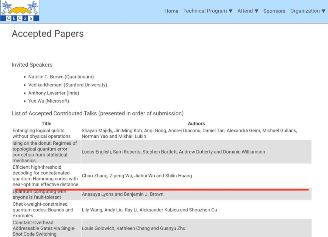 近日,全球量子计算领域顶级国际学术会议——第八届国际量子纠错大会(QEC 2026)正式公布了录用论文名单。