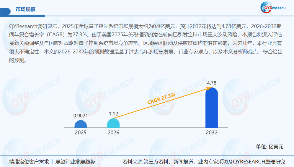 近日,国际知名咨询机构QYResearch发布《2026-2032全球与中国量子控制系统市场现状及未来发展趋势》报告,国内量子科技领军企业量旋科技凭借在量子控制(量子测控)系统领域的技术积累与市场表现,成功入选全球核心厂商名录,与Zurich Instruments (R&S)、是德科技等国际知名企业同列行业重点关注阵营。