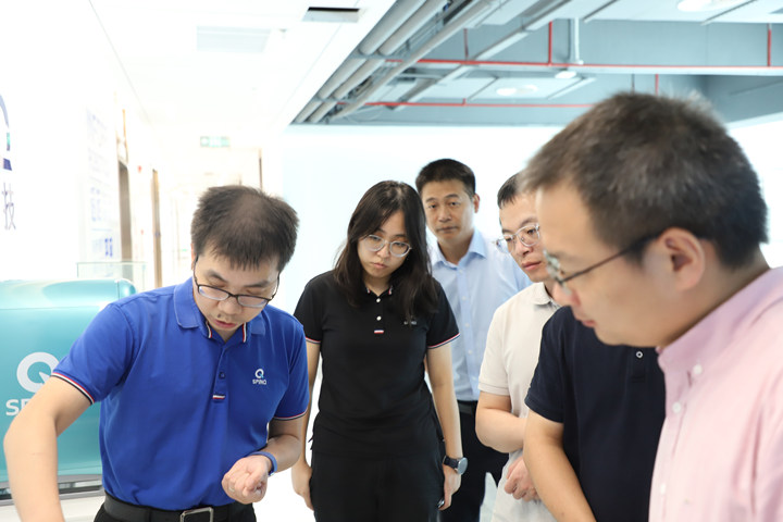 签约仪式结束后,湖南工商大学代表团参观了量旋科技展厅和超导量子计算机研发中心和超导量子芯片产线,详细了解了公司教育级核磁量子计算机、产业级超导量子计算机、量子计算云平台和应用软件相关产品及其在教学和科研场景中的实际应用,为未来的合作奠定了更加坚实的基础。